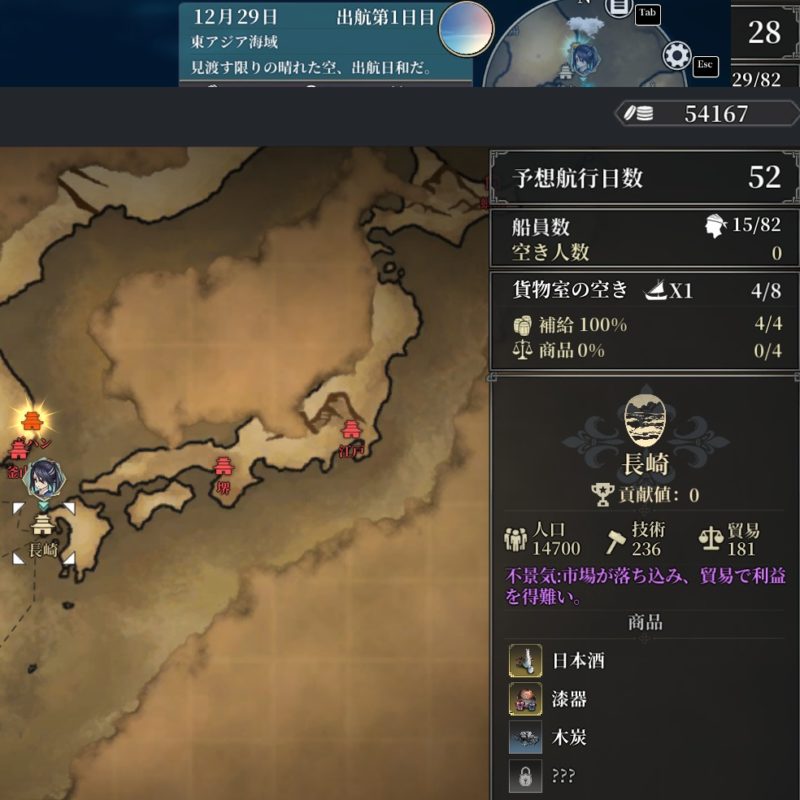 倉庫を増やす方法がよくわからず、今回はこの状態で交易を続けました。